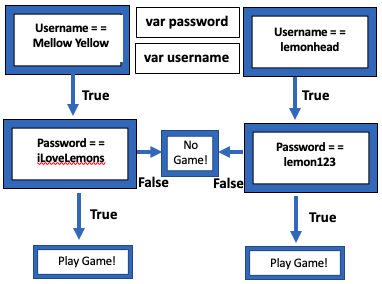 - Second: Create a Flowchart (Class Board!) for your scenario, like the last class, in which we start with a Variable, then the Expression which should include the Operator and then the outcome showing if True then one result and if False, then another result. Include Arrows. Present two values, one that will fail and one that will succeed. Example